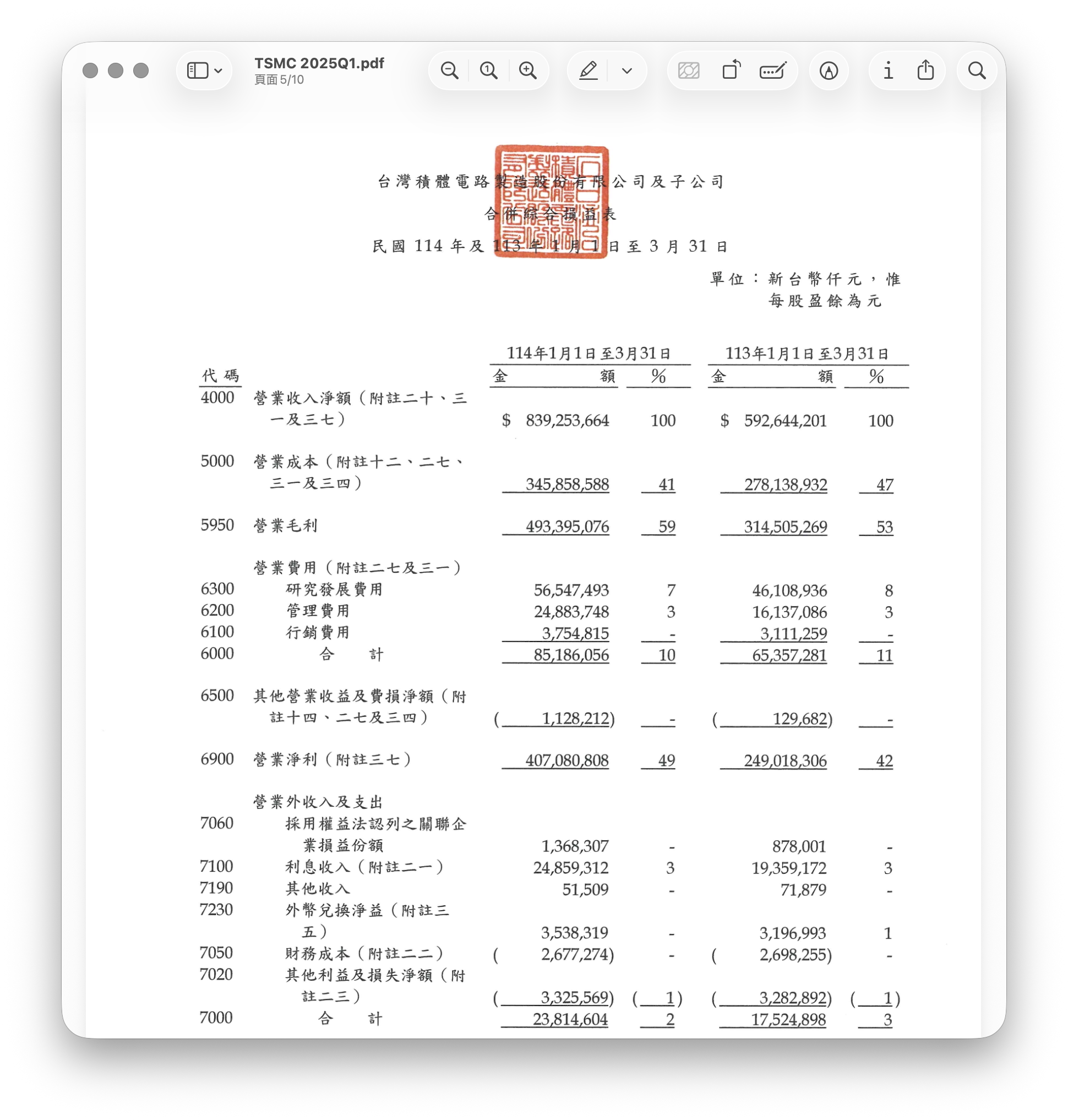 以台積電的財報為例,目標是擷取 114 年第一季的營收。