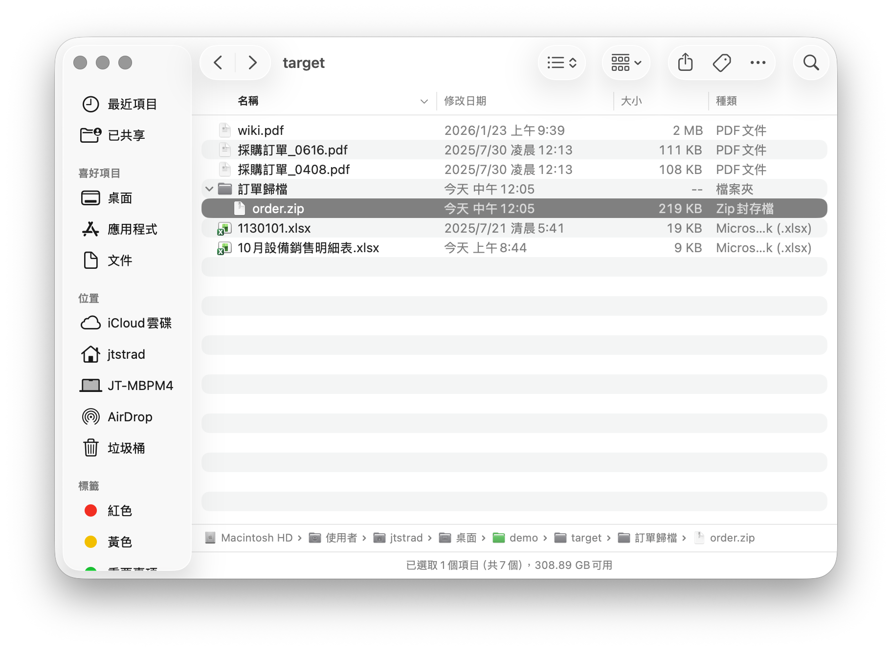以下列資料夾為例,任務是將訂單檔案壓縮成 ZIP 格式並儲存在「訂單歸檔」資料夾。