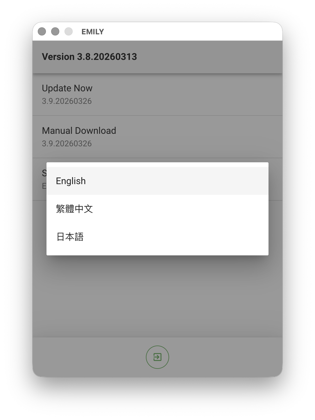 Clicking the version item opens the version details page. If an update is available, the page will show two options: "Update Now" and "Manual Download". If the automatic update fails, you can use manual download instead — this may happen because antivirus software or endpoint protection software blocks the download of executable installation files. When downloading manually, make sure your firewall allows connections to the domain cdn.emily-rpa.com.