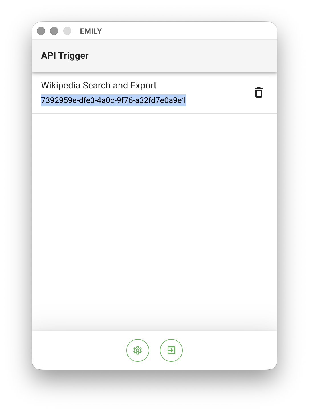 API Trigger turns EMILY.RPA into a server that provides endpoint URLs for other systems to trigger specified skills via HTTP API. This requires a static IP address or hostname, and you must ensure that the requesting device can reach the local machine through the firewall.