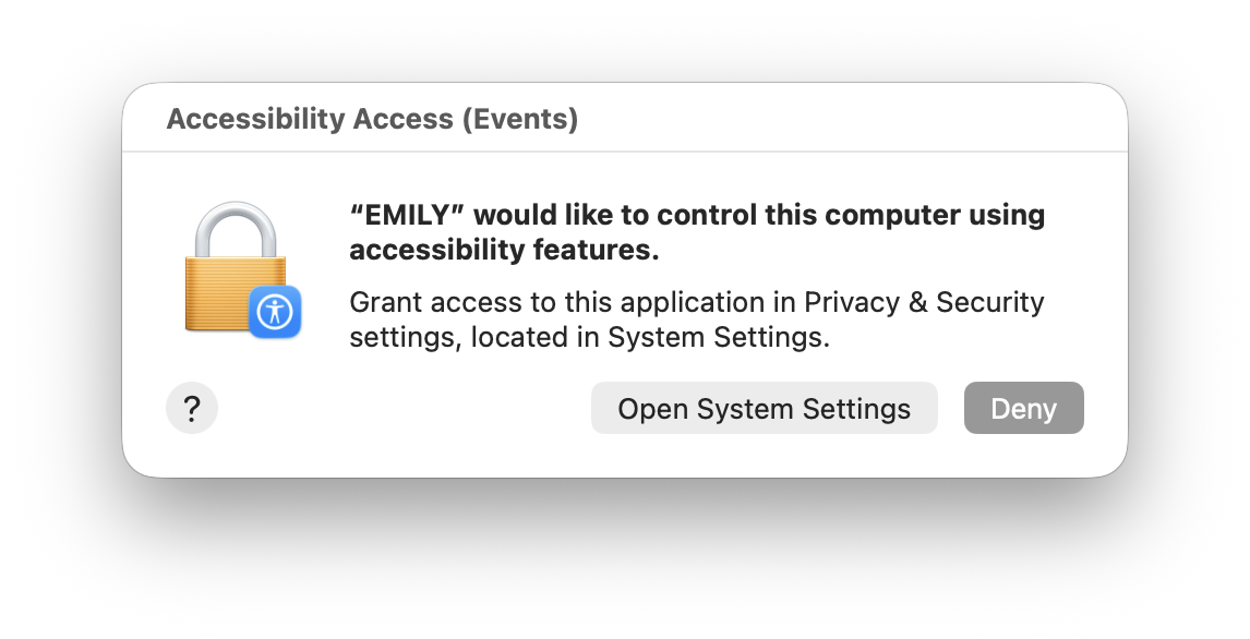 Since screen analysis is required, the user needs to grant "Screen Recording" permission when opening this module for the first time. Additionally, since mouse and keyboard control is needed, the user also needs to grant "Accessibility" permission.