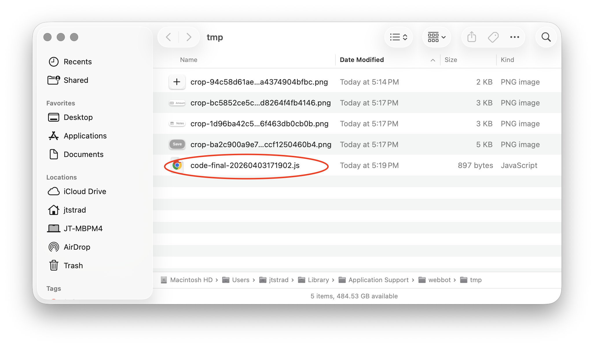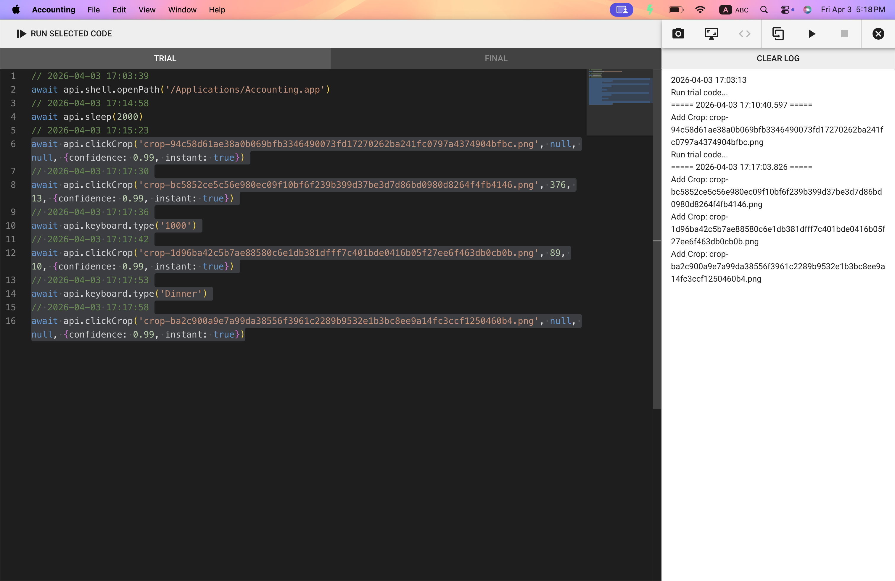 Finally, press "SAVE" to complete and save the desktop automation. If you forget to save, you can open the training mode working folder, where the code from the FINAL area will be saved in a file named code-final-xxxx.js:
