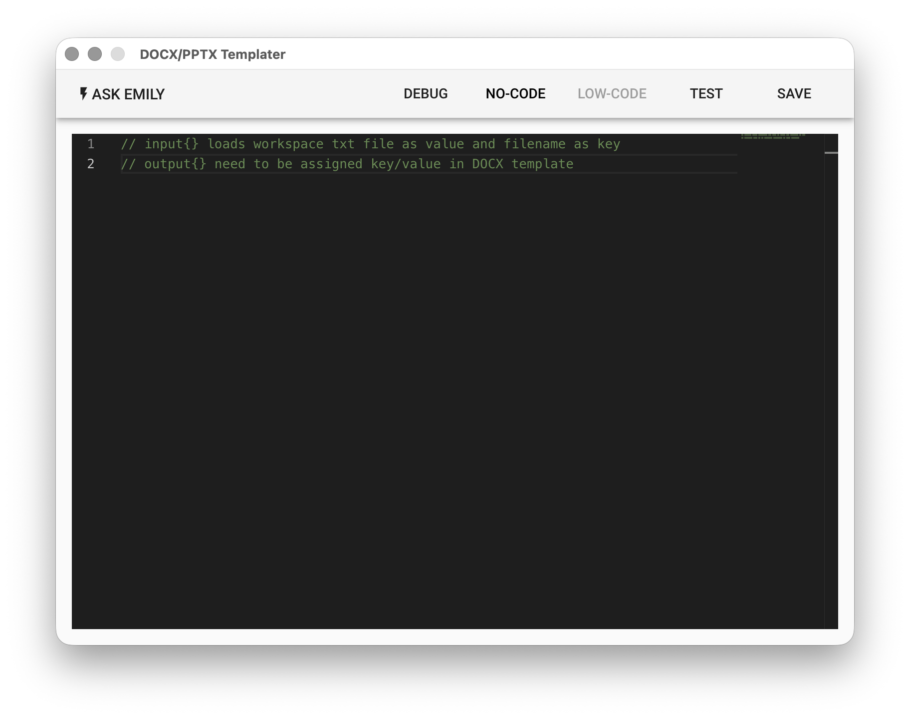 DOCX/PPTX TEAMPLTE - The DOCX/PPTX template file used to generate dynamic content. Click "PICK" to select or use the %FILENAME% variable.