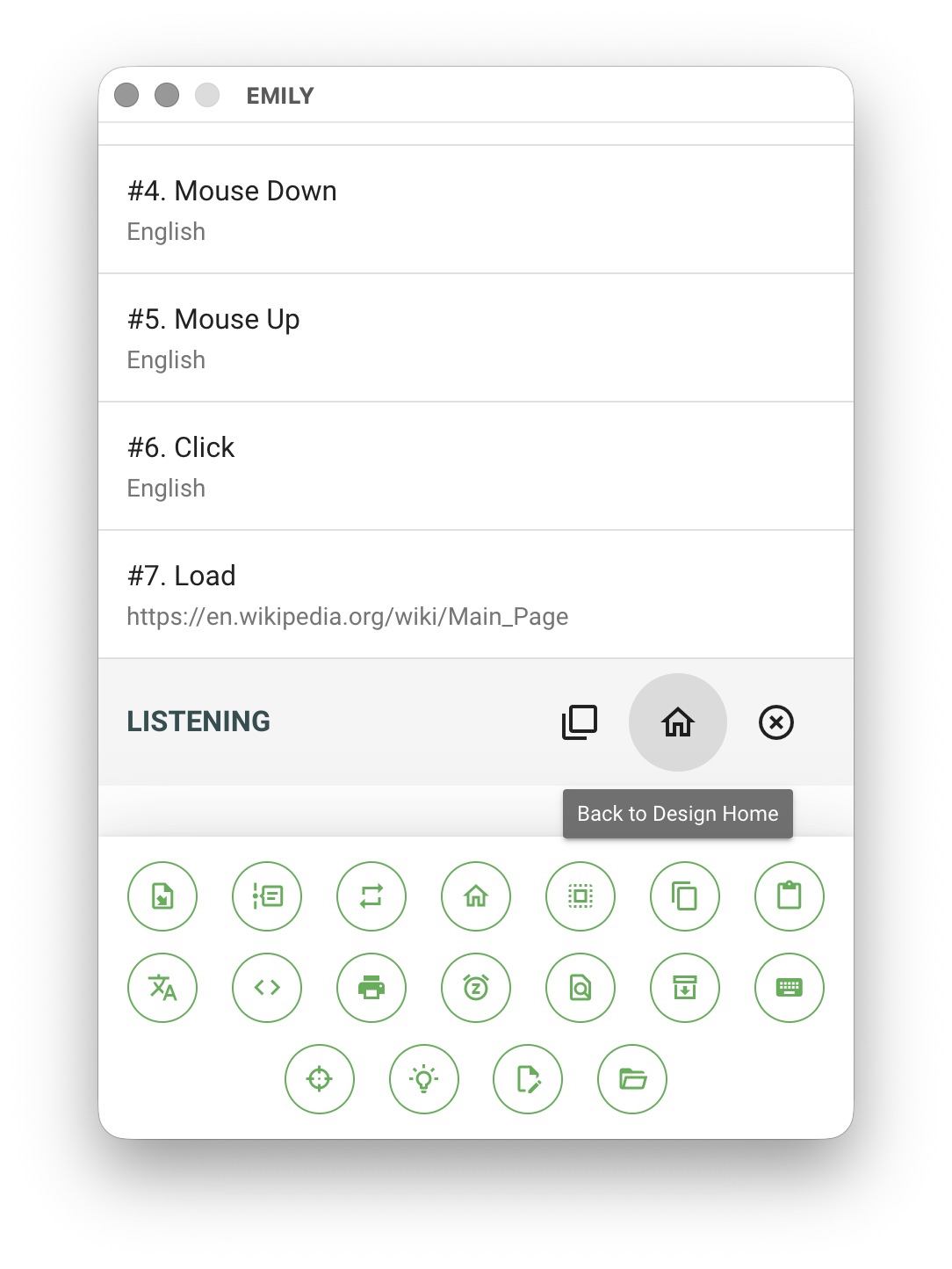 EMILY.RPA provides various automation modules that users can select and add to workflows as needed when designing skills. In Training Mode, click the "Back to Design Home" button on the main interface.