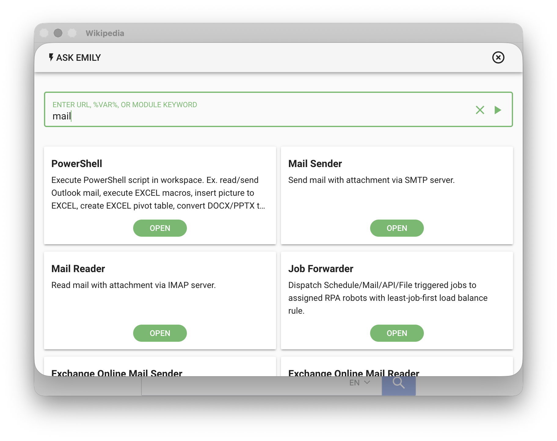 You can also click "ASK EMILY" in the upper left of the Design Home to ask the AI in natural language which modules might meet your needs, or even describe the general workflow process and let the AI suggest which modules to consider.