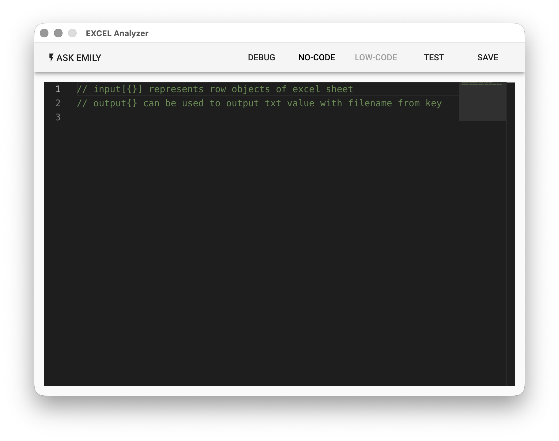 EXCEL表格分析。利用指定表格名、資料起始儲存格、表頭欄位將載入資料正規化,呈現一致的資料結構(input輸入陣列)作為 Low-Code 資料分析來源,結果寫入工作資料夾文檔