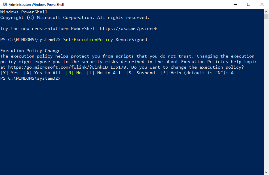 Windows PowerShell 預設限制呼叫 ps1 檔案,此時可在 Windows 上利用管理員身分(Run as Administrator)啟動 Windows PowerShell 終端機模式,以 Set-ExecutionPolicy 命令更新設定為 RemoteSigned 即可: